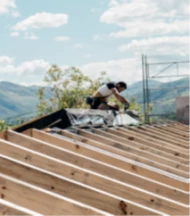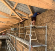 Le centre d’hébergement inclusif, porté par Habitat Sud Atlantic (maître d’ouvrage) et exploité par l’association EVAH (espace de vie pour adultes handicapés), est construit en ossature bois et isolé avec de la paille. La paille sous-produit de l’agriculture répond aux exigences d’économie de ressources et d’énergie de l’écoconstruction. Elle aide aussi à réguler l’humidité participant ainsi au confort des habitants.